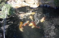 逆に池に明るい色を塗ると錦鯉が落ち着かず、キワがぼけ綺麗に見えません。