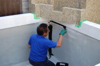 腕の良い左官職人によってしっかりと「おさえ」をしてもらいます。 防水塗料だけを塗ればいいという声も聞きますが、塗料によってはアクが生き物に害を及ぼすこともあります。