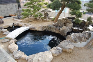 5.5×2.5×1.0(深)m 錦鯉の飼える和風鑑賞池 総水量約13t