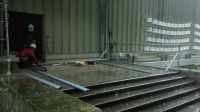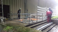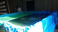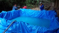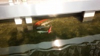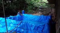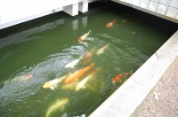 錦鯉は仮説水槽にて掃除完了までストックします。 |