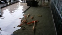 工事が完了との連絡があり、錦鯉を積込み工事現場へ向かいます。